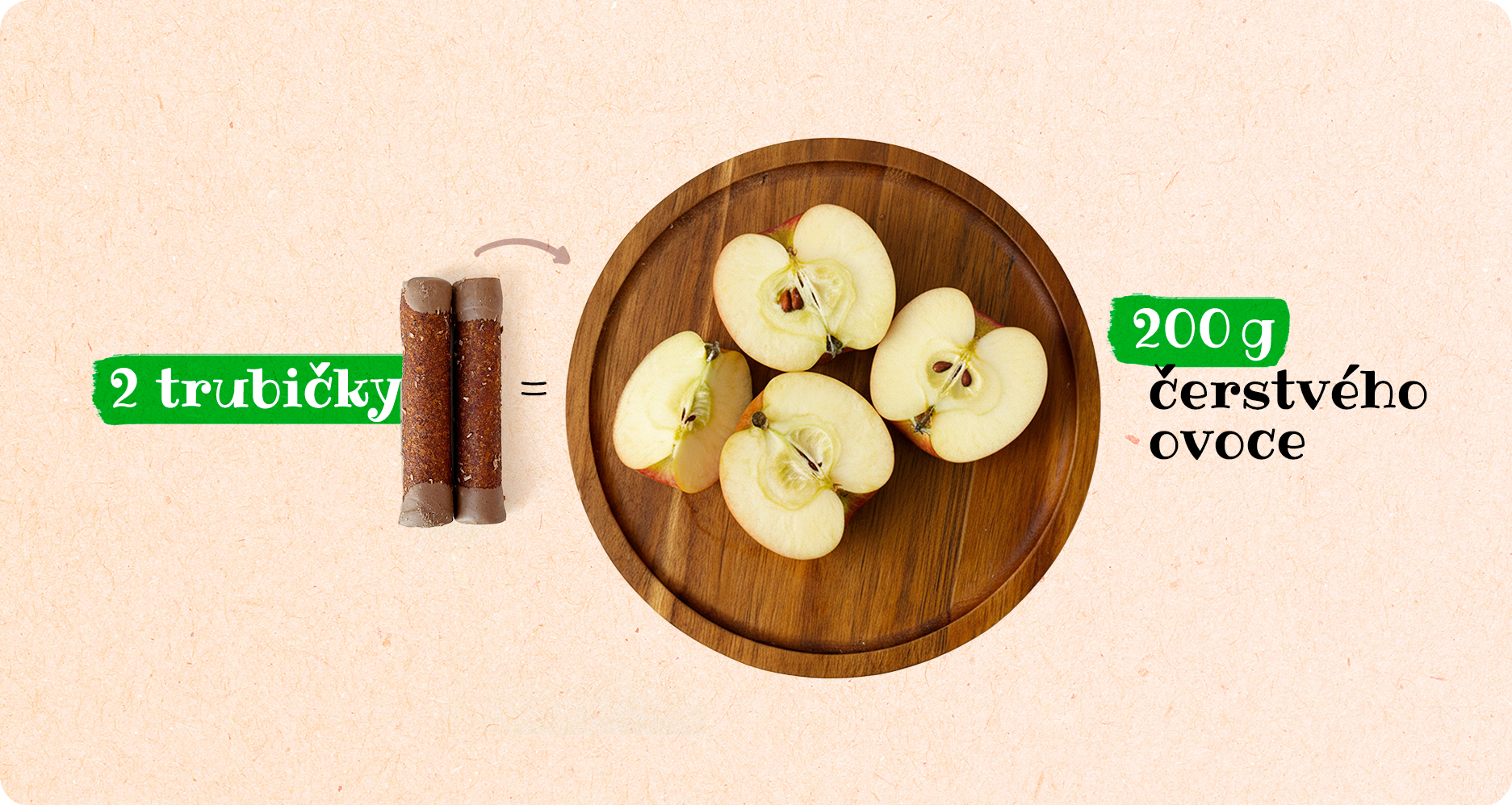 Ve dvou trubičkách tak najdete porci živin odpovídající zhruba 200 g čerstvého ovoce, do kterých byla přidána špetka kokosu a jejichž konce byly namočeny do lahodné karobové polevy. Ideální volba pro všechny, kteří hledají kvalitnější alternativu k běžným cukrovinkám.