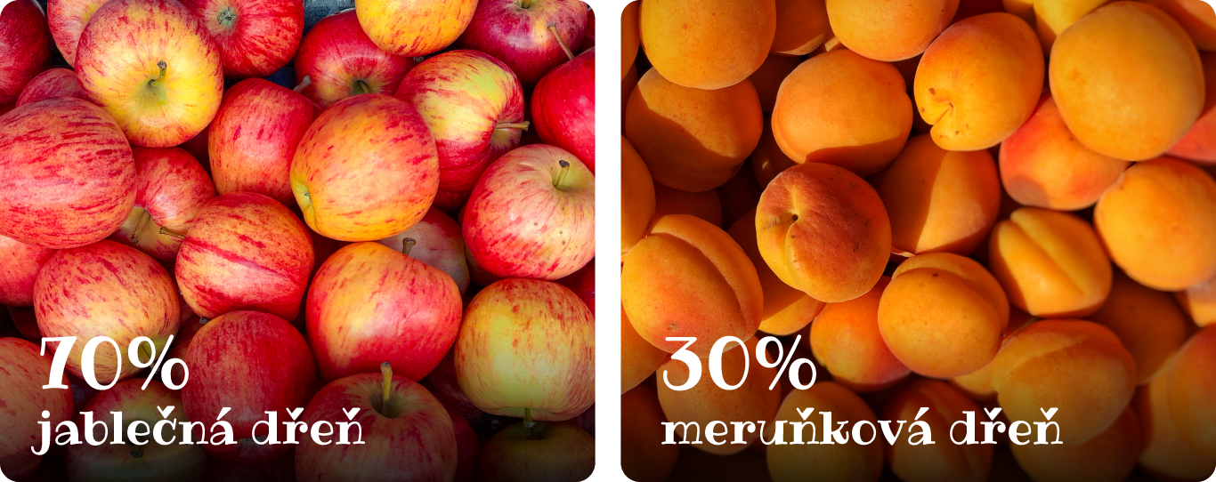 Ovoce nejprve rozdrtíme a vylisujeme na jemnou dřeň pomocí technologie vlastní výroby. Tím se přirozeně uvolní vláknina, vitamíny a minerální látky, které jsou v ovoci obsažené.