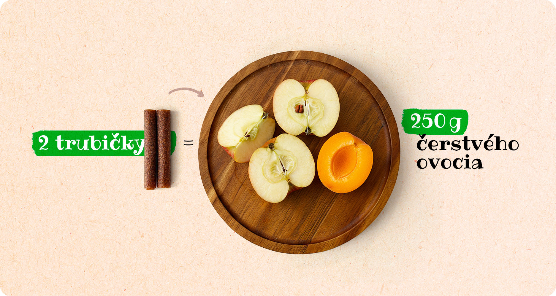 Naše ovocné trubičky v sebe skrývajú 100% silu ovocia. Sú doslova koncentrátom vitamínov, prospešnej vlákniny a prirodzenej energie. Vďaka nášmu šetrnému sušeniu neprídete o žiadne zdraviu prospešné látky a v dvoch trubičkách dostanete porciu živín, ktorá zodpovedá zhruba 250 g čerstvého ovocia.