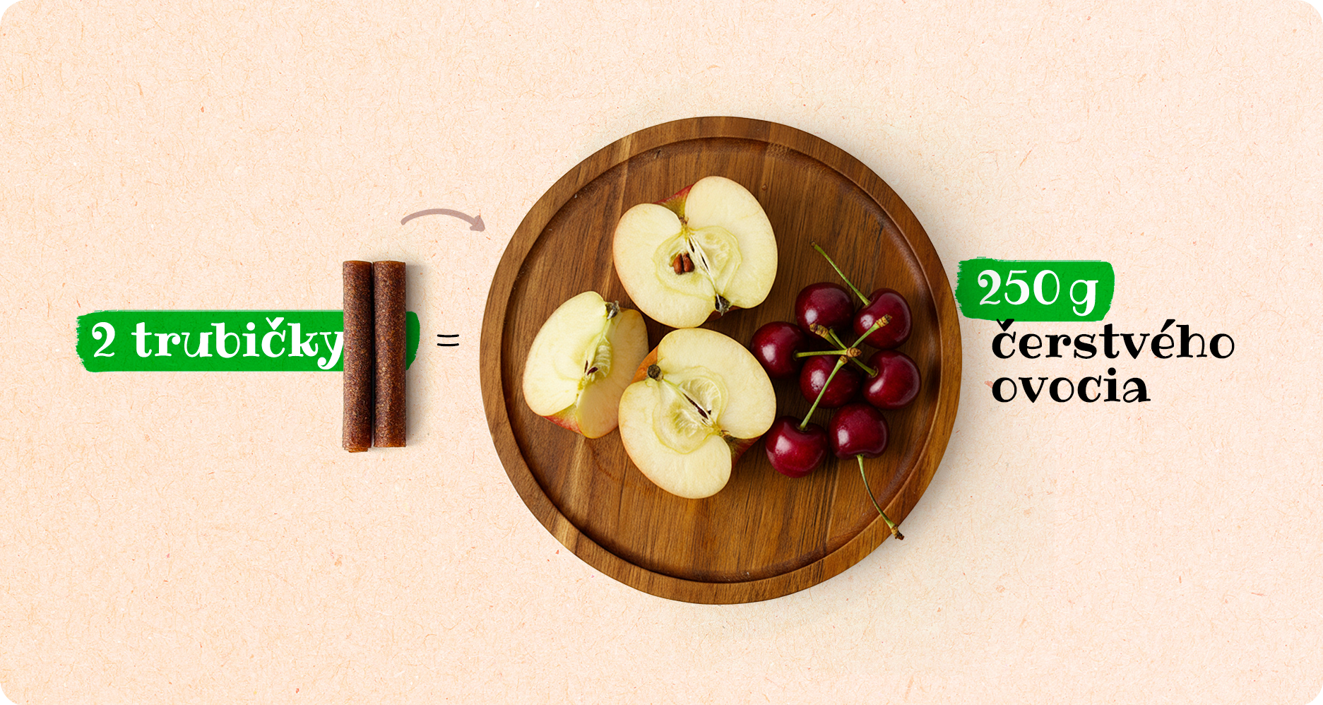 Naše ovocné trubičky v sebe skrývajú 100% silu ovocia. Sú doslova koncentrátom vitamínov, prospešnej vlákniny a prirodzenej energie. Vďaka nášmu šetrnému sušeniu neprídete o žiadne zdraviu prospešné látky a v dvoch trubičkách dostanete porciu živín, ktorá zodpovedá zhruba 250 g čerstvého ovocia.